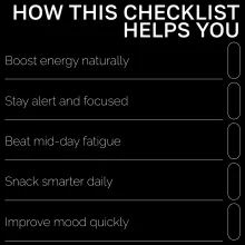 This checklist is ideal for busy professionals, students, entrepreneurs, and health-conscious snackers who want smarter ways to recharge. It’s also perfect for anyone trying to replace sugary or processed snacks with nutrient-packed alternatives that actually work.