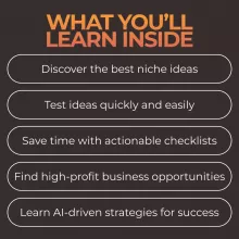 - Quick-start checklists designed to help you rapidly test niche ideas and ensure you’re on the right track.