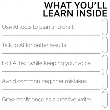 Unlike generic AI writing tutorials, this guide focuses on real-world application and personal growth. It teaches you how to use AI as a creative partner—not a replacement—so your writing feels authentic, confident, and efficient from day one.