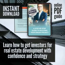 Ready to bring your real estate vision to life but don’t know where to start when it comes to funding? A Step-by-Step Guide to Building Your Dream Project is your all-in-one resource to learn exactly how to get investors for real estate development—written for aspiring developers, entrepreneurs, and project visionaries like you. This downloadable guide gives you the blueprint to confidently approach investors, present your ideas with clarity, and secure the backing you need to make your dream project a reality.