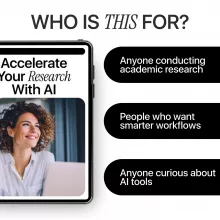Unlike generic AI guides, Accelerate Your Research with AI focuses specifically on research tasks. It goes beyond tool lists and shows you how to think critically, write better prompts, avoid common pitfalls, and use AI as a support system—not a shortcut.