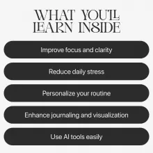 - Chapter 2: Daily AI-Powered Routines – featuring morning mindset boosts, stress-relief prompts for busy days, and evening reflection exercises.
