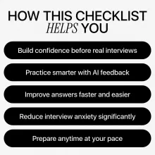 This checklist is perfect for job seekers, career switchers, recent graduates, and professionals preparing for promotions or competitive roles. If you want a modern, tech-powered way to prepare that goes beyond generic advice, this resource is for you.