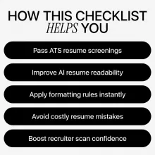 This isn’t theory or generic advice—it’s a practical, no-fluff checklist you can use while actively editing your resume. Every item is designed to reduce misreads by ATS software and improve how AI interprets your content. You’ll also find realistic ai resume formatting tips that show you how to let AI help clean and organize your resume while keeping your personal story intact.