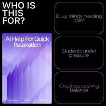 Take your first mini escape today. Download AI Help for Quick Relaxation and discover how small pauses can make a big difference in how you feel, focus, and flow. Let ai help with short relaxation routines guide you toward peace—one mindful breath at a time.