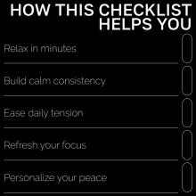 This checklist is ideal for anyone who wants to stay calm and centered amid a busy life—students, parents, creatives, or anyone juggling multiple responsibilities. Whether you’re new to mindfulness or simply looking for short, effective breaks that fit your schedule, this guide helps you build meaningful pauses into your day using ai help with short relaxation routines.