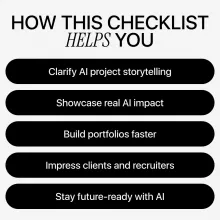 If you want a clearer, stronger portfolio that shows how you design with AI—not just that you use it—this checklist is for you. Download the AI Portfolio Playbook for Designers today and start turning your AI projects into a portfolio that truly stands out.