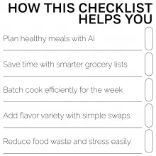 Grab your copy of the AI-Powered Meal Prep Checklist today and discover how ai meal prep tips for the week can help you cook efficiently, save time, and enjoy every bite. It’s not just a checklist — it’s your shortcut to organized, flavorful living.