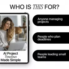 AI Project Timelines Made Simple is a practical, no-fluff digital guide designed to help you plan smarter, faster, and with far less guesswork. If project timelines feel overwhelming, constantly change, or fall apart halfway through, this guide shows you how to use AI as a reliable planning partner. Instead of rigid schedules, you’ll learn how to create timelines that adapt, respond to real data, and stay realistic from start to finish.