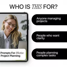 Unlike generic AI guides, this ebook focuses specifically on ai prompts for project planning with real-world examples, prompt tips, and workflows you can apply immediately. It balances AI efficiency with human oversight, helping you stay in control while working smarter.