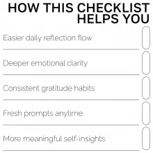 Unlike generic journaling guides, this checklist blends human intention with AI creativity—helping you uncover perspectives you may not have considered while keeping your reflection deeply personal. It’s streamlined, actionable, and designed to help you see results from day one.