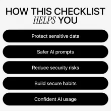 Most resources talk about AI security in theory. This checklist focuses on real behaviors that cause problems. It highlights the most common ai security mistakes to avoid and shows you exactly how to change your habits without slowing down your work. It’s short, scannable, and designed to be reused daily—not read once and forgotten.