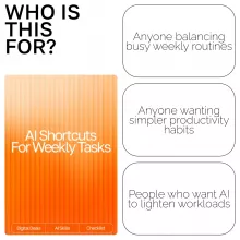 Unlike vague AI guides, this checklist gives you actionable, ready-to-use instructions tailored specifically to weekly workflows. Every shortcut is simple, repeatable, and designed to deliver immediate results—making it a practical tool you’ll use every single week.