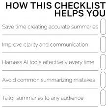 - Avoid Common Summarizing Mistakes: Avoid vague instructions, ensure accuracy, and prevent missing nuance in AI-generated summaries.