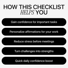 This checklist is perfect for professionals, managers, team leaders, and anyone who wants to boost confidence using AI for daily affirmations for work confidence. If you want to feel empowered, motivated, and ready to tackle challenges without hesitation, this guide gives you the tools to make it happen every day.