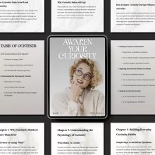 Awaken Your Curiosity is a beautifully designed eBook that helps you rediscover the art of asking questions, exploring new ideas, and seeing the world through a more open, inspired lens. If you’ve ever felt stuck in routine or disconnected from your creative spark, this guide will show you how to cultivate curiosity through simple, practical steps. Perfect for thinkers, dreamers, and lifelong learners, it bridges psychology, mindfulness, and modern tools to help you live more engaged, thoughtful, and inspired each day.