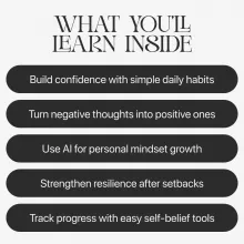 Unlike generic mindset eBooks, this guide blends psychology-based techniques with modern tools like AI prompts and practical tracking resources. It’s not just theory – it’s a complete system you can apply daily to see real change, fast.