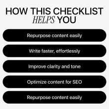 This checklist is perfect for writers, bloggers, content creators, marketers, students, and small business owners who want a simple system for using AI in their writing workflow. If you want results without digging through endless tutorials, this was made for you.