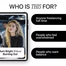 If you’re ready to work sustainably, protect your focus, and finally burn bright without burning out, this digital guide is ready for you. Download today and start building a freelance life that lasts.
