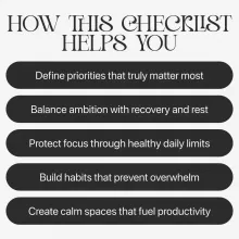 - Step-by-step checklist for daily and weekly goal balance