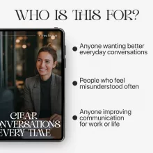 Misunderstandings cost time, energy, and relationships. Clear Conversations Every Time is a practical, easy-to-follow guide that teaches you real-world ways to communicate without misunderstandings so you can express yourself confidently at work, at home, and everywhere in between. This digital guide goes beyond generic advice and breaks communication down into clear, simple steps you can apply immediately, even if you’re not a “natural” communicator.