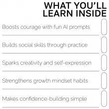 Help your child shine with Confidence-Boosting AI Activities Kids Love—a playful, practical digital guide designed to build courage, creativity, and communication skills in a modern world. This easy-to-use eBook shows parents and educators how to harness kid-friendly AI tools to strengthen confidence through storytelling, games, social prompts, growth-mindset activities, and more. If you want a screen-time resource that’s not only safe but genuinely developmental, this guide is your new go-to.