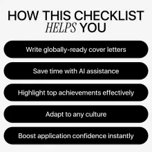 This checklist is perfect for job seekers aiming for international opportunities who want to combine professional guidance with cutting-edge AI for writing a cover letter for an international job. It’s ideal for early-career professionals, experienced candidates, and anyone looking to make a global impression with a standout cover letter.
