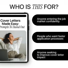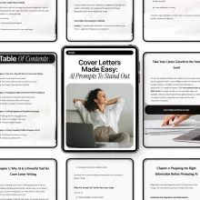 Struggling to make your cover letters stand out? Cover Letters Made Easy: AI Prompts to Stand Out is your ultimate digital guide to creating professional, tailored cover letters quickly and confidently. This easy-to-follow eBook shows you exactly how to harness AI for cover letter writing, making your application shine and grab recruiters’ attention. With practical prompts and step-by-step guidance, you’ll learn to craft letters that highlight your experience, skills, and personality without sounding generic.