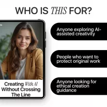 Unlike other digital resources, Creating with AI Without Crossing the Line combines practical examples, ethical guidance, and clear checklists in one easy-to-follow package. It doesn’t just tell you what to avoid—it empowers you to create confidently while respecting copyright and maintaining your unique creative voice.