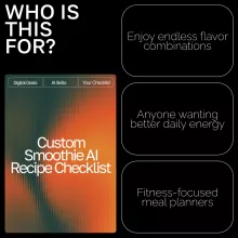 Get your Custom Smoothie AI Recipe Checklist now and transform your smoothie-making routine. Mix, match, and personalize every drink—because the best recipes are the ones made just for you.