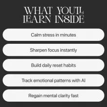 - Teaches you how to design a mental reset routine for stressful moments that fits your unique lifestyle