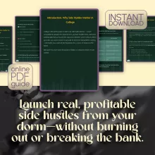 Ready to ditch the broke college student stereotype? Dorm Room Dollars: Smart Side Hustles for College Students That Actually Work is your no-fluff, action-ready guide to starting profitable side hustles without sacrificing your GPA. Whether you’re looking to earn extra cash for pizza, books, or saving for post-grad life, this downloadable guide shows you the smart way to hustle—right from your dorm room. Packed with real examples, actionable strategies, and step-by-step plans, this isn’t just another generic list of “gig economy” ideas. This is the ultimate side hustle roadmap made *for* students, *by* students who’ve made it work.