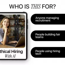 Hiring with AI can save time and improve consistency—but only if it’s done right. Ethical Hiring with AI is a practical, plain-language ebook designed to help you use AI tools in recruitment without risking bias, unfair decisions, or loss of candidate trust. This guide breaks down what ethical AI really means in hiring and shows you how to apply it confidently in real-world workflows, even as tools and regulations continue to evolve.