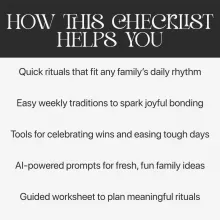 - Mini Workbook: Your Family Ritual Blueprint — A guided, fill-in section to help you personalize and implement your rituals right away.