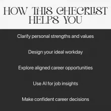Choosing the right career shouldn’t feel like guesswork. The FIND YOUR FIT CHECKLIST is a practical, easy-to-use digital checklist designed to help you move from confusion to clarity with confidence. If you’ve ever wondered how to pick a job that fits your goals, this guided resource walks you step-by-step through self-discovery, career mapping, and decision-making using both proven reflection exercises and smart AI support. It’s not just another career worksheet, it’s your personal system for making smarter job choices that align with who you are and where you want to go.