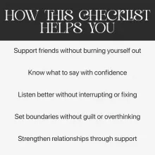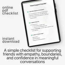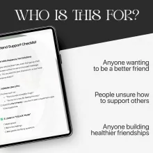 If you’ve ever wondered how to support a friend without sounding awkward, giving bad advice, or feeling overwhelmed, this checklist was made for you. Download it today and become the kind of friend everyone feels safe opening up to.