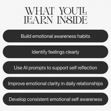 This digital download includes a structured, beginner-friendly emotional awareness guide that blends science and self-reflection. Inside, you’ll find clear explanations, real-life examples, practical exercises, and an exclusive section on Using AI tools for reflection to support your emotional growth. The guide also includes modern journaling techniques, reflective questions, and actionable routines for daily practice.