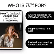 If you want to walk into your next interview ready to speak clearly, confidently, and credibly about AI, this digital guide is for you. Download now and start turning your AI experience into interview-ready answers that make a lasting impression.
