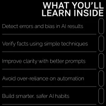 - Chapters 5–7: Avoid common pitfalls, build better AI habits, and create reliable verification workflows for the future.