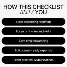 This checklist is perfect for beginners exploring AI, professionals upgrading their skill set, students preparing for tech careers, creators using generative AI, and entrepreneurs who want to leverage automation. If you want a clear roadmap focused on ai skills in demand now, this resource is for you.