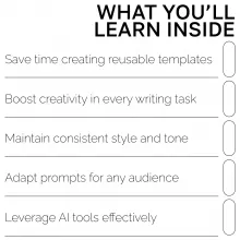 - Chapter 1: Building Your First Prompt Templates: Learn template structures, identify reusable patterns, explore example templates for different writing styles, and avoid common mistakes.