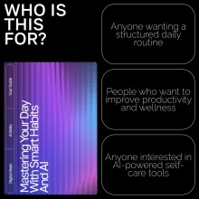 Feeling overwhelmed by your busy schedule? Mastering Your Day with Smart Habits and AI is your ultimate digital download to take control of your daily routine. This comprehensive guide combines practical self-care strategies with powerful AI tools to help you optimize your health, mind, and productivity. Whether you want to track habits, build a balanced routine, or understand your personal growth patterns, this eBook, checklist, and guide offer step-by-step instructions to transform your everyday life into a more intentional, fulfilling experience.