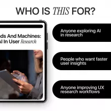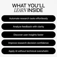 Unlike generic AI guides, Minds and Machines focuses specifically on ai in user research. It blends strategy, ethics, real examples, and hands-on workflows, so you are not just learning concepts—you are learning how to apply them responsibly and effectively.