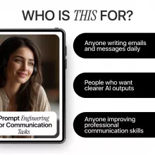 Unlike generic AI guides, this resource focuses exclusively on communication. It combines practical examples, real workflows, and proven structures so you can apply what you learn immediately. The emphasis on building a personal prompt library makes this a long-term skill, not just a one-time read.