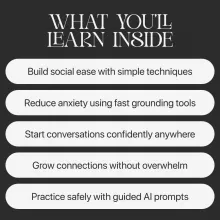 - Chapter 5 — AI Prompts to Practice Social Skills: Prompts for conversation practice, self-awareness, and expanding comfort zones.