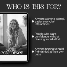 Unlike generic social-skills guides, Quiet Confidence was created specifically for introverts—and shaped with compassion for your natural strengths. It uses real-world scripts, sensory-friendly techniques, and supportive AI prompts to help you apply social tools immediately, even if traditional methods have felt draining before. It’s practical, gentle, and designed to be used at your own pace.
