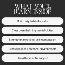 - Chapter 6: Powerful AI prompts for journaling, guided relaxation, emotional clarity, and habit planning