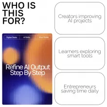 This guide is perfect for creators, students, entrepreneurs, and anyone eager to get more from AI tools. Whether you’re writing, designing, brainstorming, or experimenting, Refine AI Output Step by Step teaches you how to refine ai output step by step so you can achieve consistent, high-quality results with less trial and error.