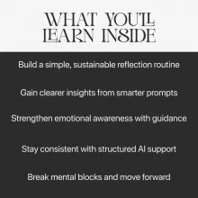 - Chapter 1 — Why AI Helps You Reflect Better: How AI Supports Honest Self-Inquiry, When to Use AI for Reflection, plus a real weekly AI check-in case study.