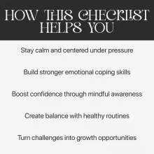 Unlike generic self-help guides, this checklist blends mindfulness, practical psychology, and daily self-care into a straightforward format you can actually follow. Every section is designed to help you reflect, act, and grow—without adding pressure or complexity to your day. It’s your realistic path to becoming calmer, stronger, and more centered in every situation.